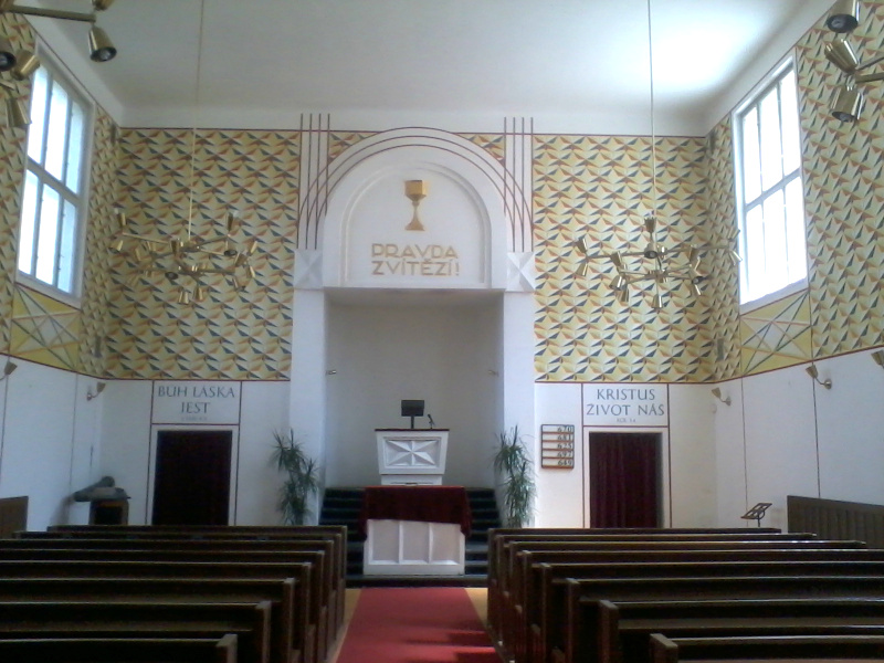 Výmalbu kaple provedl na počátku devadesátých let spolu se svými studenty ze Střední umělecké školy akademický malíř Pavel Novák. Pro prostor evangelického kostela je trochu neobvyklá, vysvětluje současný žižkovský farář Pavel Kalus: „Evangelické kostely a modlitebny bývají většinou bílé, naše kaple zarazí svou pestrou mozaikou na stěnách.“