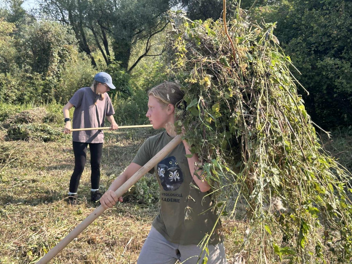 Díky brigádníkům se tento týden podaří posekat trávu v části areálu o celkové velikosti 85 hektarů. Nebo vybudovat základy pro plánovanou pozorovatelnu ptáků.