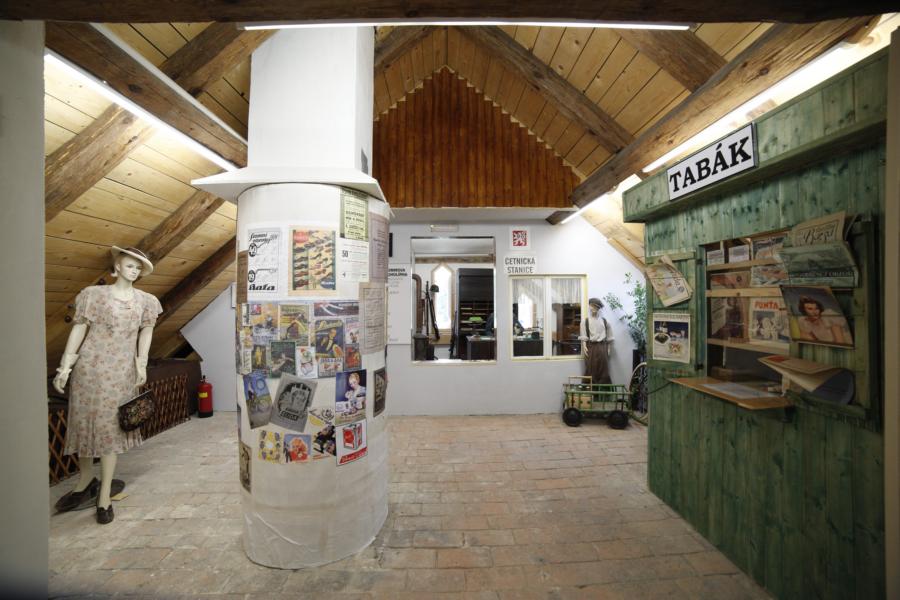 Muzejní prostory evokují ulici z první republiky. Nechybí tu obchůdky, kavárna, řemeslnické dílny, ani sloup s dobovými plakáty. „Asi deset let spolu se svým přítelem sbíráme věci, které souvisejí s meziválečným obdobím. Soustřeďuji se hlavně na módu a módní doplňky, přítel sbírá hlavně uniformy. Dlouho jsme hledali způsob, jak naše sbírky vystavit, až jsme se domluvili s obcí,“ prozradila spolumajitelka muzea Marie Létalová. Některé exponáty pak už pořizovali přímo pro muzeum, například holičské křeslo nebo některé části četnické stanice.
