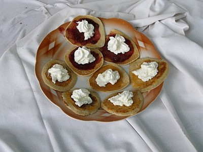 Do misky dáme vlažné mléko, droždí, vejce, cukr, sůl a nakonec nasypeme mouku. Vše promícháme a necháme 1 hodinu kynout. Potom pečeme na pánvi po obou stranách. Můžeme péct na oleji nebo pánev jenom potřeme špekem.