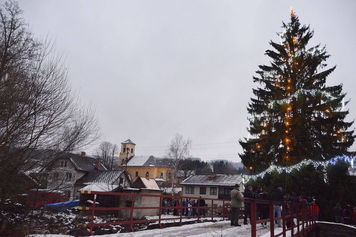 Do roku 2013 držela titul nejvyššího živě rostoucího vánočního stromu horská obec Kvilda na Šumavě. Tamní smrk před kostelem svatého Štěpána, ozdobený více než 4 000 světelnými LED diodami, měřil 25 metrů. „S Kvildou jsme stále ve spojení a máme dobré vztahy. Rozhodně to není o nějaké rivalitě,“ vysvětluje Bohuslav Matouš z Mladkova, který stojí za zápisem smrku do České knihy rekordů a společně s obcí se o strom stará.