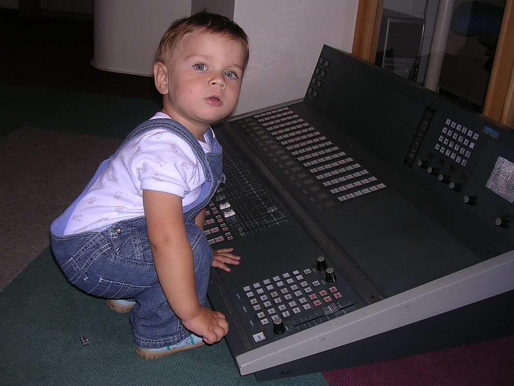 Aneb Péťa Fusek u vysílacího pultu ve studiu Českého rozhlasu v Hradci Králové. Moc se mu zalíbil.