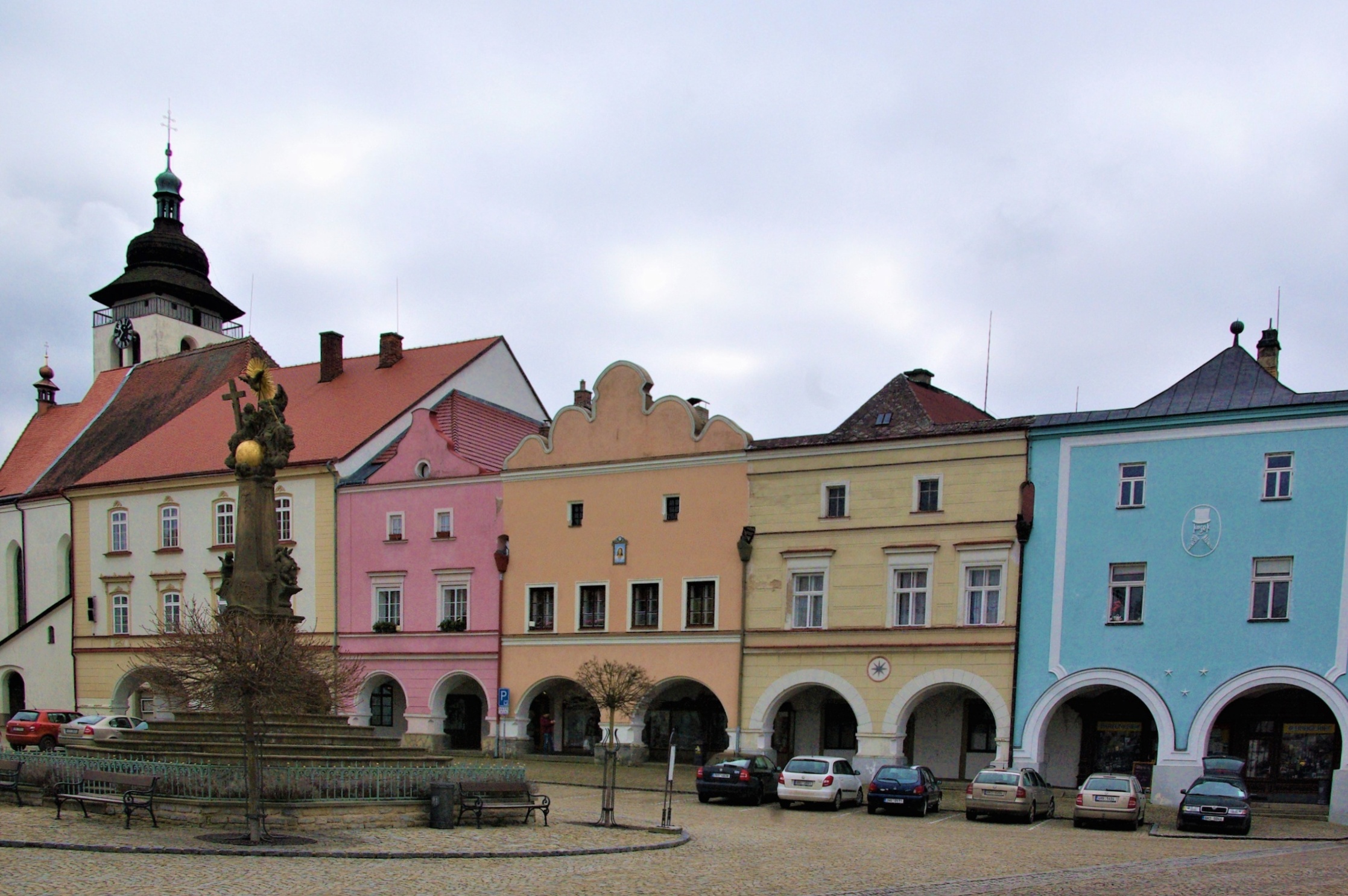 Měšťanské domy, které obklopují působivé Husovo náměstí, mají jednotnou renesanční úpravu, na severní straně s typickými štíty s tak zvanými vlaštovčími ocásky, s mázhausy a s podloubím. Náměstí je 143 metrů dlouhé a 68 metrů široké. A kromě domů s barevnými fasádami ho zdobí barokní sousoší sloupu Nejsvětější Trojice a Mariánský sloup. S novodobým vydlážděním náměstí ladí i soudobě zrekonstruovaná studna, která od 16. století zásobovala město vodou. Nahlédnout do ní můžete i dnes, ale vodní hladinu už v ní nespatříte.