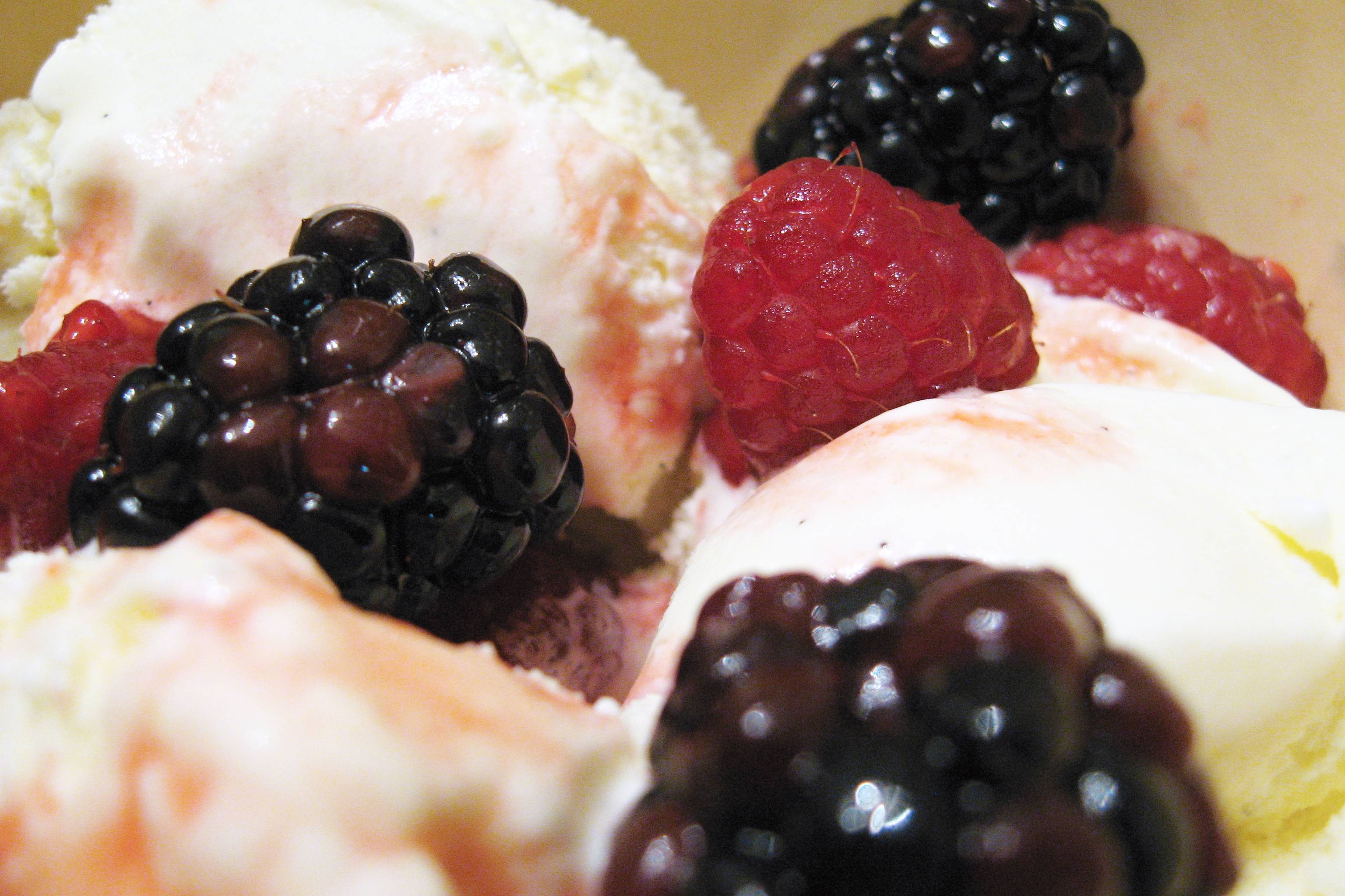 Zmrzlý krém nakrájíme na porce nebo vykrájíme tvořítkem na zmrzlinu, ozdobíme kopečkem ušlehané smetany a ovocem.