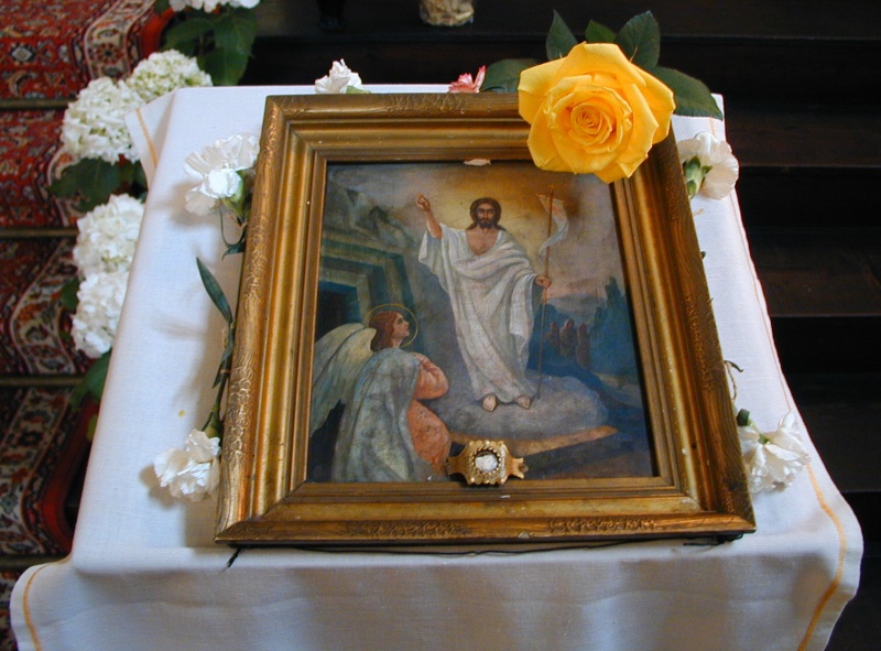 Chrám je vyzdoben květinami a osvětlen, kněží jsou oblečeni v nejsvětlejší a nejkrásnější roucha. Uprostřed chrámu leží ikona znázorňující Krista rozbíjejícího brány pekel a osvobozujícího spravedlivé, počínaje Adamem a Evou.