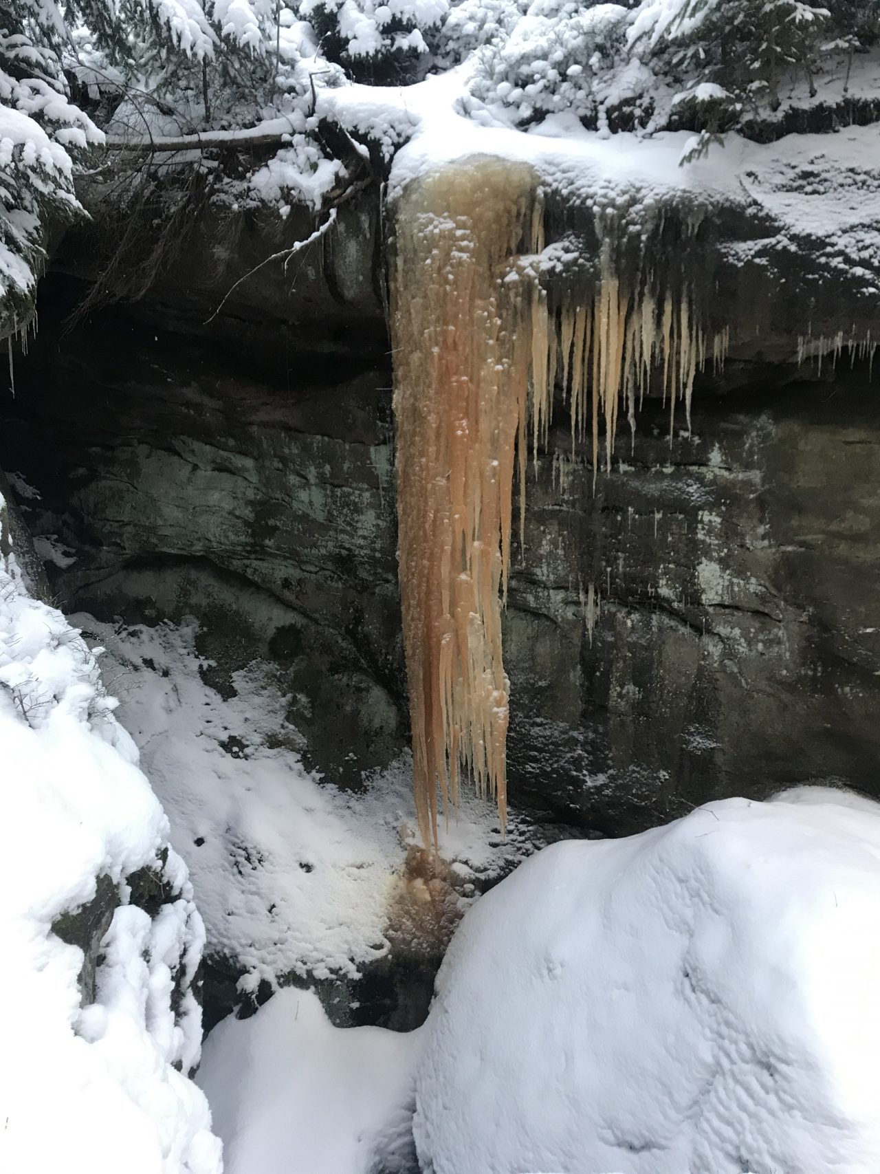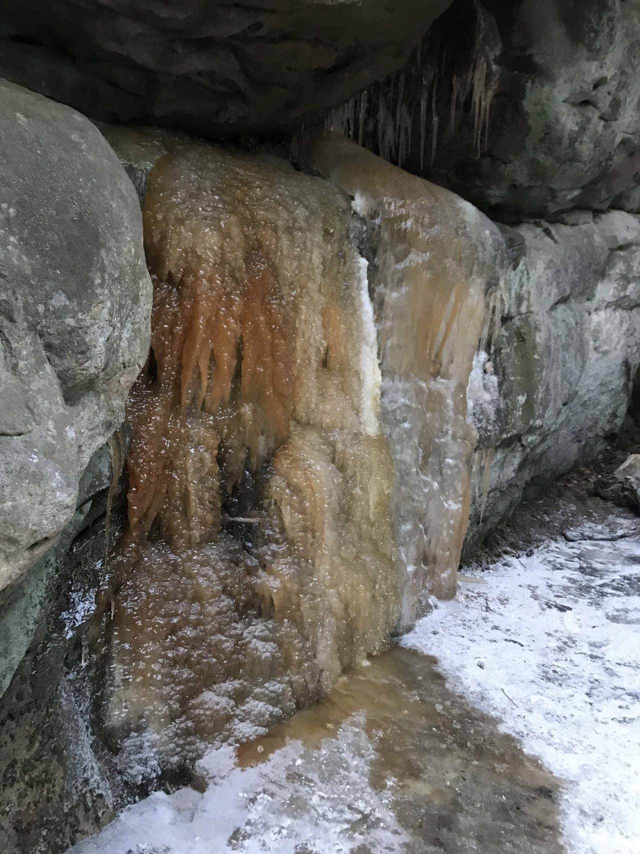Odstíny žluté, oranžové a hnědé barvy způsobuje podle odborníků mikroskopická sněžná řasa žijící v ledu. „Nazývá se chlamidomonas nivelis. Je to bičíkovec, takže nedoporučuju ty ledové rampouchy lízat. Rodiče by měli v tomto ohledu dát na své děti pozor. Je to kryofilní organismus, což znamená, že má rád zimu. Proto se množí a tu vodu zabarvuje při minusových teplotách. Čím víc minus, tím líp,“ vysvětluje člen stráže přírody na Pulčíně Jaromír Navrátil.