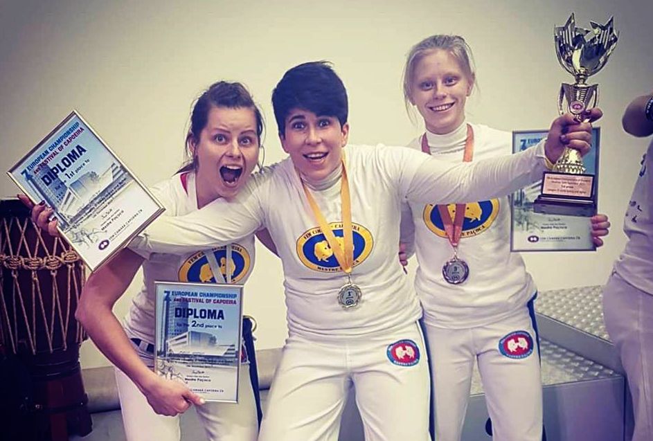 Ano, přesně tak. Když jsem byla ještě malá ještě, tak jsem střídala sporty. A v tu dobu jsem dělala judo. A potkala jsem kamarádku a tím, že jsem měla strašně ráda koně, tak jsem se posadila na jejího koně, který mě ale shodil a zlomila jsem si ruce. Pak jsem se šla podívat na ten trénink juda a tam jsem viděla capoeiristy, jak cvičí.