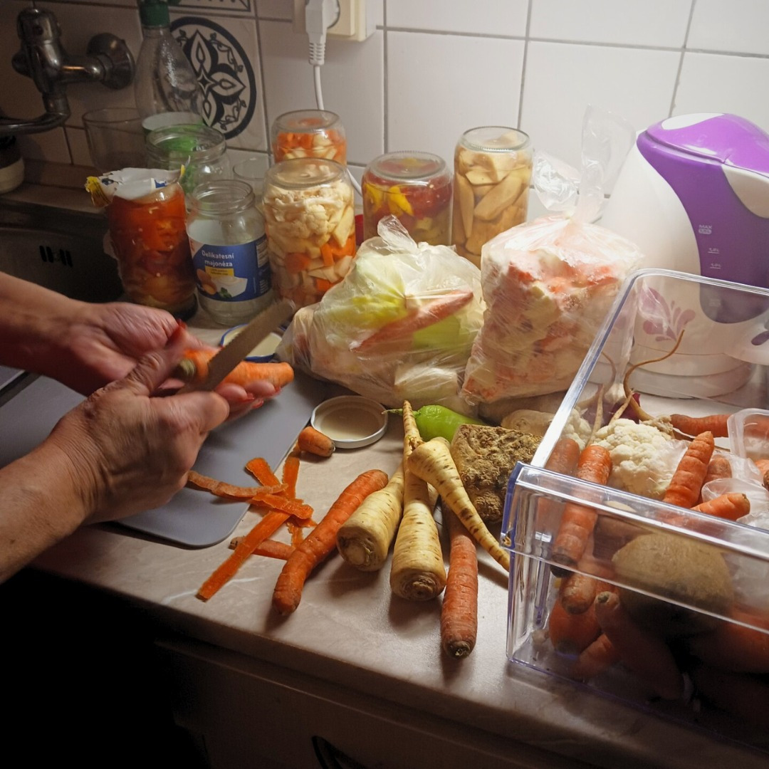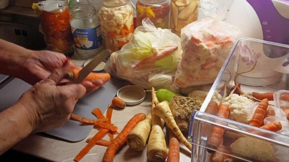 Jídlo z Potravinové banky si chodí vyzvedávat pravidelně dvakrát týdně. Potraviny následně zavařuje nebo mrazí, aby vydržely déle. „Díky tomu si ušetřím i nějaké peníze. Je to výhodné, protože my jsme hodně na zeleninu, naše rodina. Celer, květák, je tady krásná mrkev, cibule. Teď jsem třeba ušetřila tisícovku.“