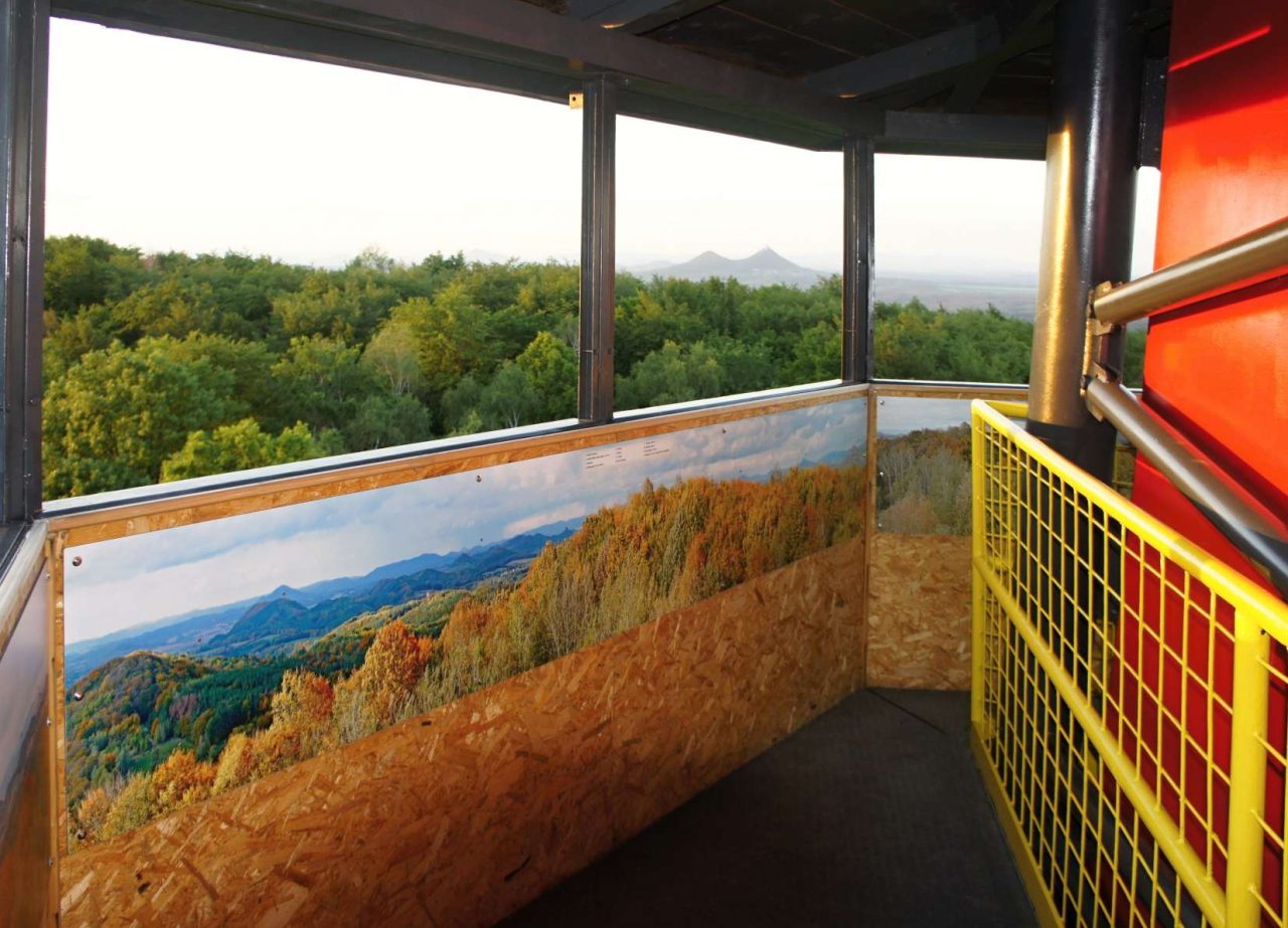 Rozhledna je vysoká 42 metrů, vyhlídkový ochoz se nachází ve výšce 25 metrů a vede na něj 127 schodů. Schodiště je točité a schované v krytém tubusu. Z vyhlídkové plošiny je úchvatný kruhový výhled na hrad Bezděz, na Malý Bezděz, Ralskou pahorkatinu, hrad Housku, Housecké vrchy, Kokořínsko, České středohoří, hraniční hory ale i na Prahu. Z dobré viditelnosti je vidět i Ještěd. Výhled popisují velké panoramatické fotografie umístěné po obvodu celého ochozu.